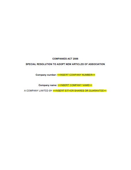 This Special Resolution - Adopt New Articles of Association template is in Microsoft Word format, written in plain English, easy to use and edit.