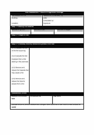 Under the Order, the responsible person must carry out a Fire Safety Risk Assessment Form. This Fire Safety Risk Assessment Form template helps you comply with the requirements of the Regulatory Reform (Fire Safety) Order 2005.